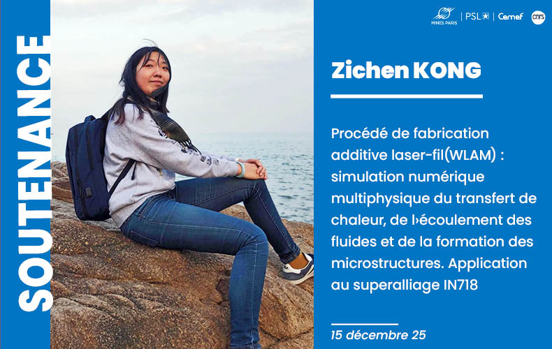 Zichen Kong a réalisé ses travaux de recherche dans l’équipe 2MS sous la direction de Gildas Guillemot, Michel Bellet et Charles-André Gandin. Elle soutiendra sa thèse de doctorat en Mécanique Numérique et Matériaux le 15 décembre 2025 sur le sujet :
