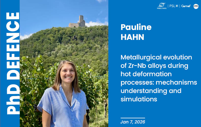 Pauline Hahn conducted her doctoral studies in the MSR team under the supervision of Marc Bernacki, Baptiste Flipon and Madeleine Bignon in the framework of a CIFRE project with Framatome. She will defend her PhD in Computational Mechanics and Materials – under the agreement of the two reviewers – on Jan. 7, 2026 on: